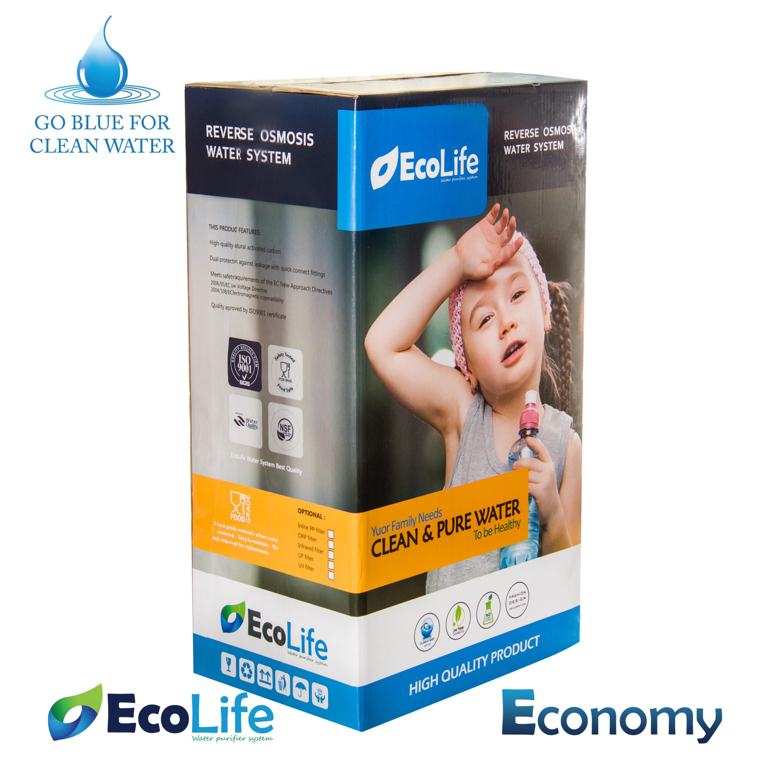 فروشگاه تصویه آب مرکزی واردکننده و پخش کننده دستگاه تصفیه آب اکولایف در ایران است. مدل Economy برای افرادی که قصد خرید تصفیه آب تایوانی با قیمت مناسب و کیفیت مناسب دارد گزینه مناسبی می باشد. البته توجه داشته باشید که تصفیه آب اکولایف مدل Economy نسبت به بسیاری از برندهای موجود در بازار ایران دارای کیفیت بسیاربالاتری است مدل Premium از بهترین قطعات و باکیفیت ترین قطعات روز دنیا ساخته شده و با توجه به کیفیت بالا دارای قیمت بالاتری هم نسبت به مدل اکونومی می باشد که شما می توانید توضیحات کامل را در صفحه تصفیه آب اکولایف مدل premium مشاهده نمایید. اکولایف جزو کمپانی هایی است که توانسته استانداردهای روز دنیا مانند Water Quality ,FDA,NSF را کسب کند، این استانداردها به این معنی می باشد که قطعات به کار رفته در دستگاه و فیلترها تحت نظارت سازمان های جهانی تهیه و تولید شده است. پمپ دستگاه ساخت کشور تایوان دارای توان خروجی بسیار بالا و در عین حال بسیار بی صدا می باشد. مخزن به کار رفته در این مدل دارای توان ذخیره ۴ گالن آب می باشد و دارای کیفیت مناسبی است. هوزینگ های به کار رفته Food Graid بوده و با آب ترکیبات شیمیایی انجام نمی دهد. درون جعبه دستگاه تمامی قطعات و متعلقات نصب و شیربرداشت موجود است و برای نصب دستگاه نیاز به هیچ قطعه اضافه دیگری ندارید. فیلترهای به کار رفته در تصفیه آب اکولایف مدل Economy از بهترین مواد اولیه ساخته شده و توان حذف ریزترین ذرات موجود در آب را نیز دارد تا آب تصفیه شده دارای بهترین کیفیت باشد.